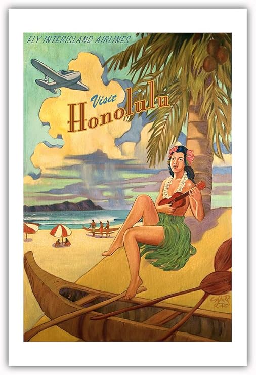Amazon Com Pacifica Island Art Visit Honolulu Hawaii Hula Girl Playing Ukulele Fly Interisland Airlines Vintage Hawaiian Travel Poster By Rick Sharp Premium 290gsm Giclee Art Print 24in Island Greeting Free Cardsocean Explorer Boat Plans